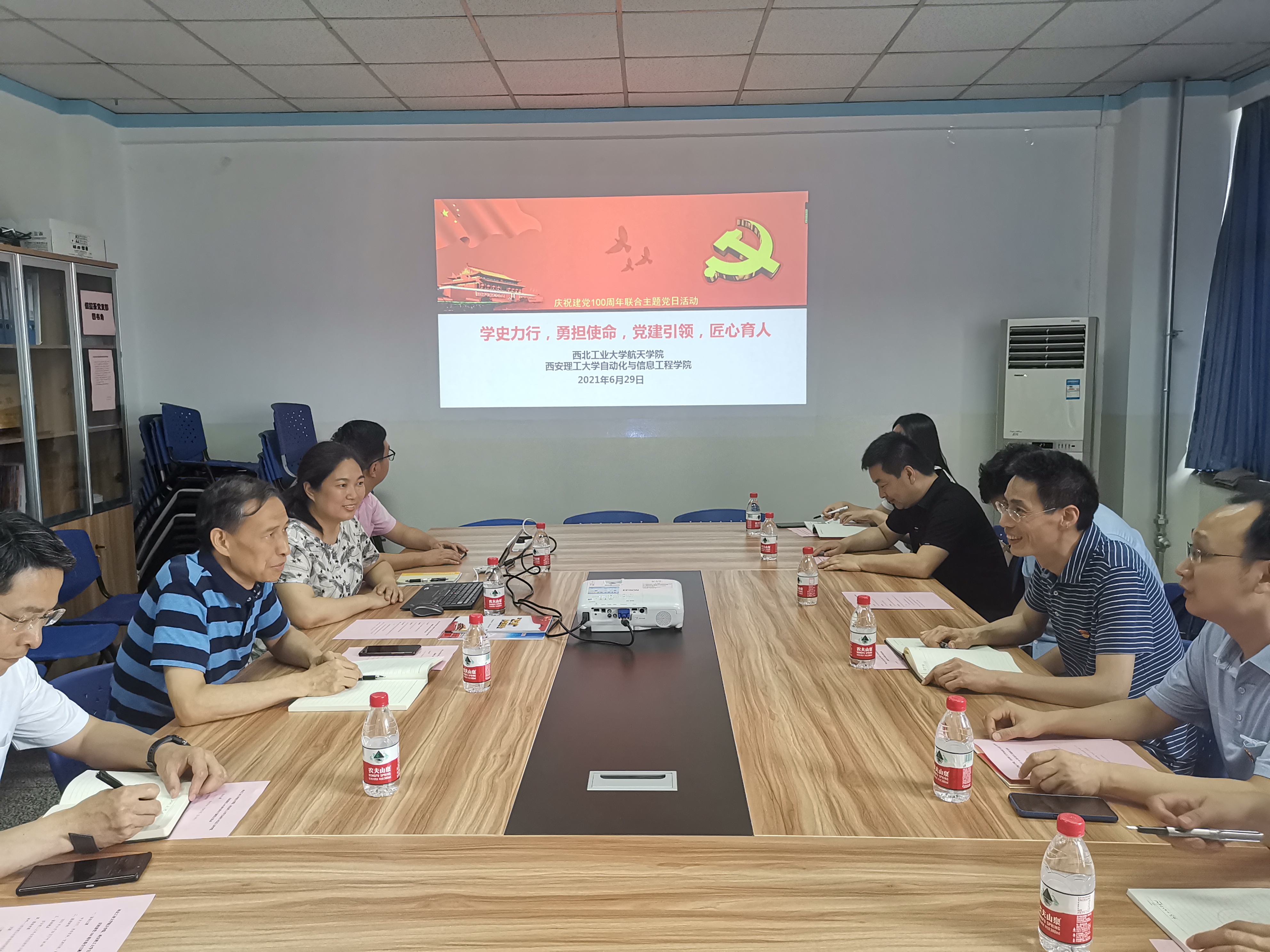 在建党100周年之际,为扎实做好“办实事”“开新局”,提升ballbet贝博全国党建工作“标杆院系”、飞行控制研究所全国党建工作“样板支部”和无人系统与控制研究所高校“双带头人”教师党支部书记工作室的创建成效, 2021年6月29日,航天公司党委书记高光良、党委委员凡永华、郭建国带领支部书记王靖宇、朱国强、闫晓东、组织员以及支部委员和员工辅导员代表等,前往西安理工大学全国党建工作标杆院系土木建筑工程公司、全国党建工作样板支部自动化与信息工程公司信息与控制工程系教工党支部开展主题党日活动,进行学习调研、交流创建经验。