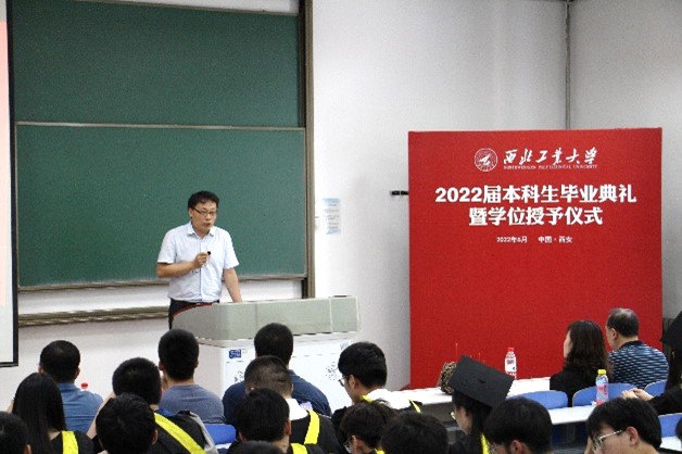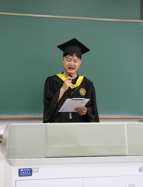 王子腾作为优秀毕业生代表发言,通过回忆宿舍、班级、ballbet贝博的点滴,感谢同学之间的相遇相知、感谢互帮互助,希望全体航天学子秉承“公诚勇毅”校训、“三实一新”校风,在以后的工作学习中,不断创新,奋发图强,勇攀高峰。