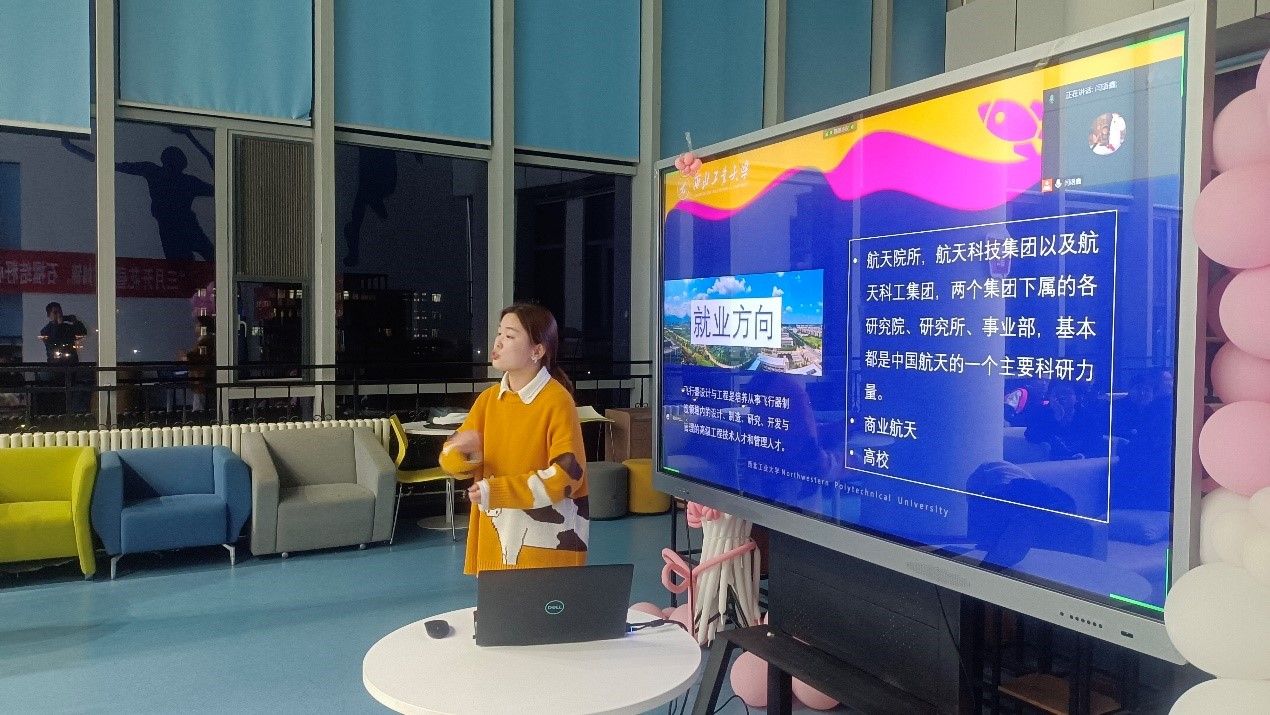 闫语鑫同学在对飞行器设计与工程专业进行介绍