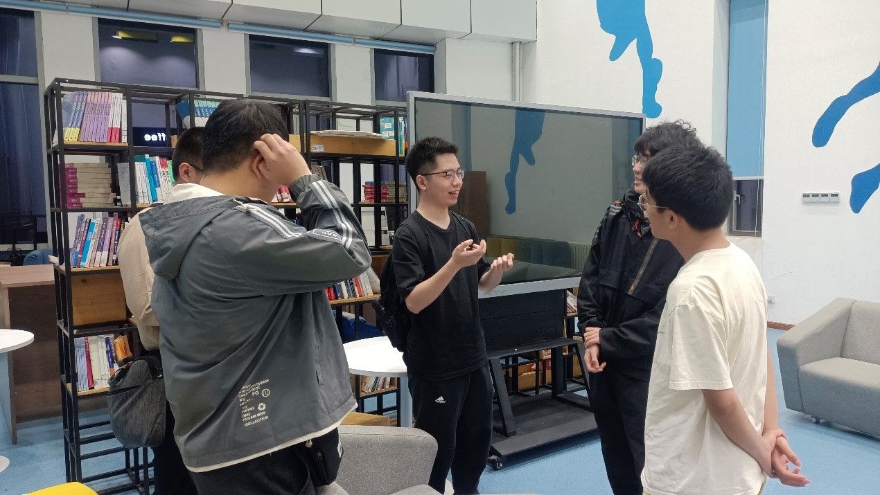 本次沙龙分享环节结束后,同学们依然兴致不减,纷纷围上前继续咨询自己感兴趣的情况。毛仁昊学长向同学们介绍自己大三学年的科研经历,精彩的故事和成果吸引到了不少的同学。
