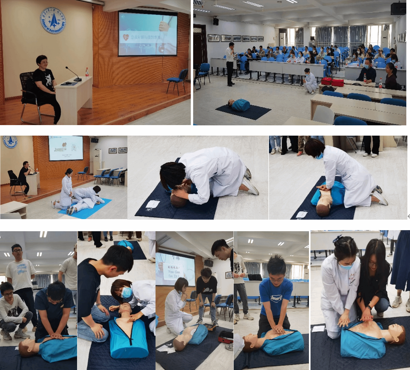之后,校医院住院部党支部成员沙娟娟副主任医师为ballbet贝博师生做了《急救知识与技能培训》报告,详细讲解了心肺复苏基本理论知识及实践操作要点、自动体外除颤器( AED) 的使用和海姆立克急救法。讲解过程中,校医院工作人员现场演示心肺复苏,AED 实践操作方法,使大家深入了解心肺复苏相关救护知识。同时,为了更加细致解答师生在急救操作过程中存在的问题,校医院汤燕医生、刘瑁医生、袁华护士、马沛瑶护士、王丽护士和董豪护士等手把手指导现场师生练习急救操作。通过本次培训,公司师生基本掌握了心跳呼吸骤停及气道异物梗阻的急救方法,提升了应急处置能力,取得了非常好的效果。