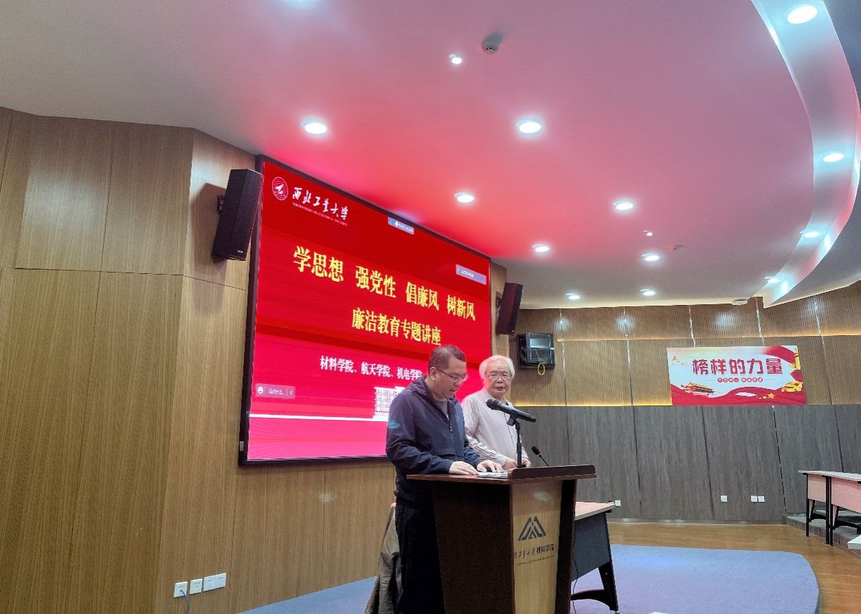 为深入学习贯彻党的二十大精神,进一步推进党风廉政建设,提高老员工廉洁修身意识,6月2日上午,航天公司党委联合材料公司、机电公司及计算机公司党委在研究生东馆开展“学思想 强党性 倡廉风 树新风”廉洁教育专题讲座,邀请到中共陕西省委党校卢飞鹰教授作《中国传统防腐惩贪制度建设与现代启示》主题报告。报告会分线下主会场和线上视频分会场,由材料公司党委副书记蔡利剑主持。