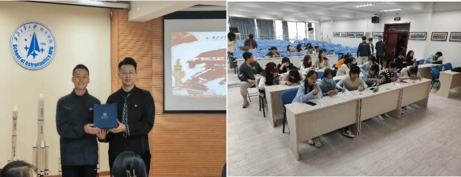 ballbet贝博飞行控制研究所研究生第2党支部张正卿同志为对方支部的同学们介绍了导弹模型的工作原理、长征系列火箭的知识科普和卫星在轨服务的大致运转流程。