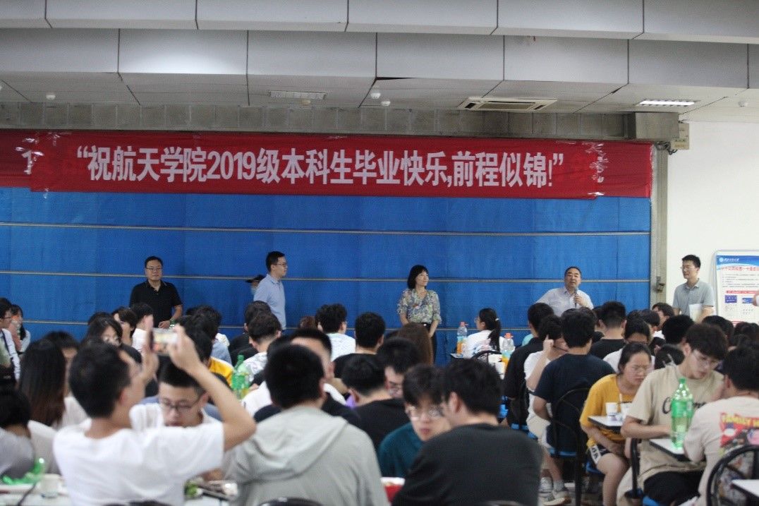 座谈会圆满结束后,ballbet贝博2019级全体师生欢聚一堂,举行了毕业聚餐。在这个特殊的时刻里,岳晓奎经理代表公司全体教师向ballbet贝博2019级本科生表示了最诚挚的祝福和感谢:“你们是ballbet贝博的骄傲,你们用勤奋和智慧书写了属于自己的精彩篇章。希望你们毕业后继续保持对航天事业的热爱和追求,祝你们毕业快乐,前程似锦!”