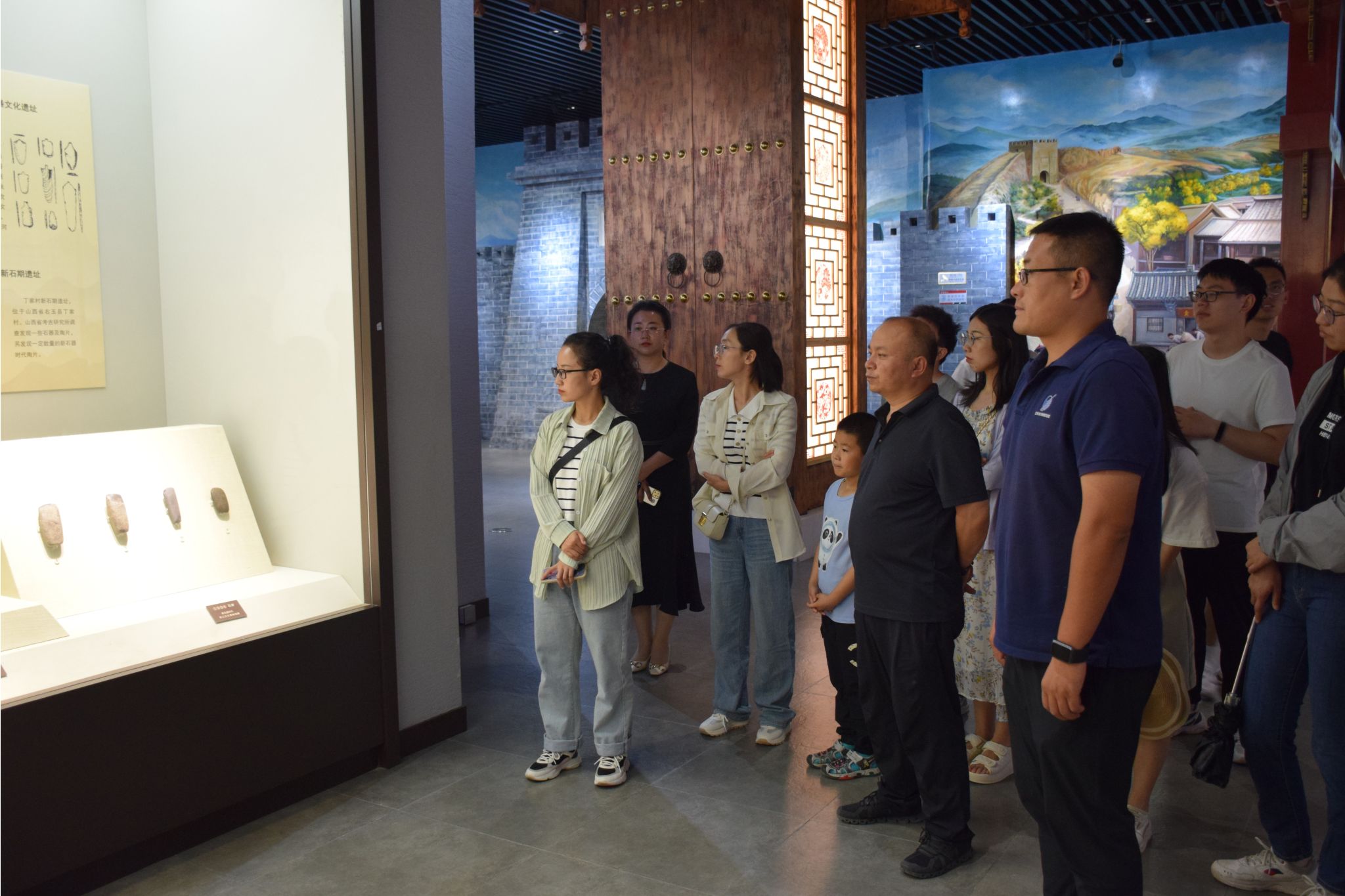 16日上午,实践团队赴西口博物馆进行参观。调研期间,实践队从博物馆壁画、雕塑,再到明清时期的服饰以及百姓独具特色的生活用品中,领略到塞上的独特文化。在感受昔日晋商辉煌的同时,也深切的体会到当年那段辛酸又伟大的人口迁徙史。实践队成员韦初晴由衷的发出感慨:“从文物的背后亲身发掘历史,远比书籍上苍白的文字给人印象深刻”。