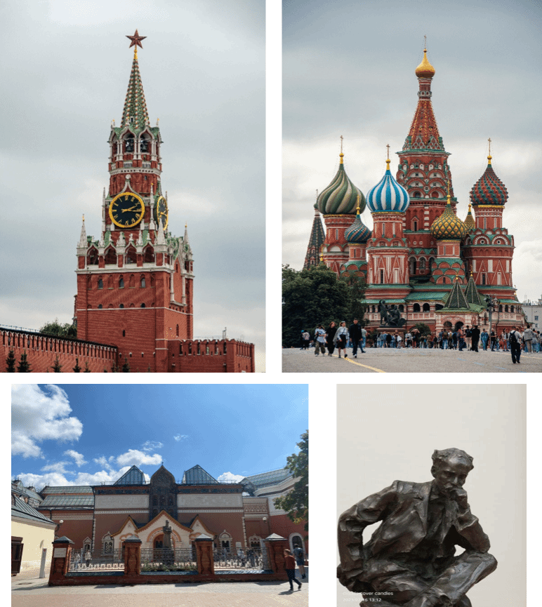 对俄罗斯的印象是以红场参观游览之行开始具象化的。7月16日,暑期公司团队一行人,便来到久负盛名的莫斯科红场,红场——古俄语意为“美丽的广场”,是俄罗斯最具代表性地标之一,也是俄罗斯举行各种活动的重要场所。克里姆林宫为红场主要建筑之一,坐落于红场西侧。沿莫斯科河,欣赏着美丽的风景,一路来到俄罗斯全国规模最大地艺术博物馆——特列季亚科夫画廊,画廊里收藏了许多世界名家的作品,如列宾、罗丹、达芬奇的作品等,欣赏这些作品使员工们更好地了解和感受俄罗斯艺术的内涵和魅力。