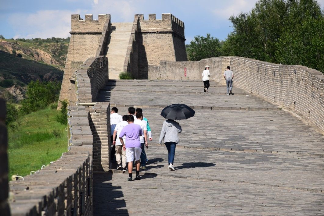 随后实践队员们走上了位于晋蒙两省交界处杀虎口城墙,在城墙上对当地的历史文化与发展进行了深入交流。