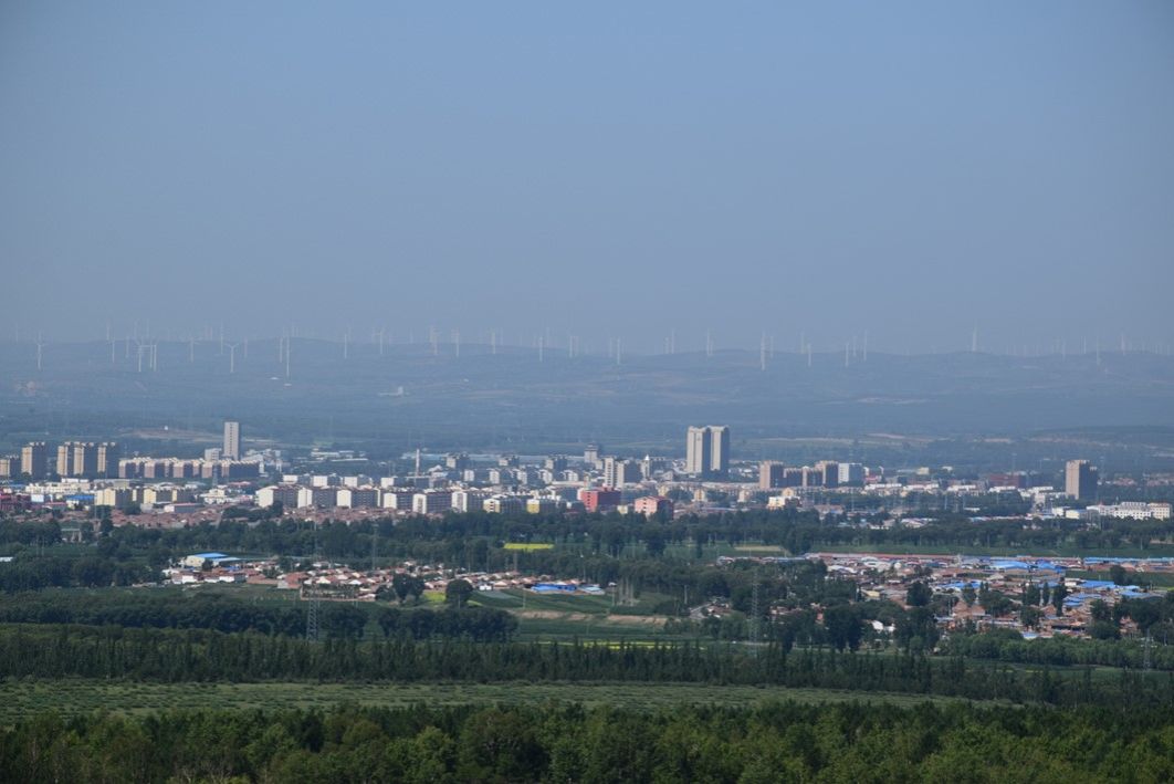 17日上午,实践队在右玉干部公司、县委组织部、县工信局、县委人才服务中心相关同志的陪同下首先参观了右玉县四五道岭生态园区。在到达四五道岭后,实践队员们看到了如今坐落在一片“绿色海洋”中的右玉县城。