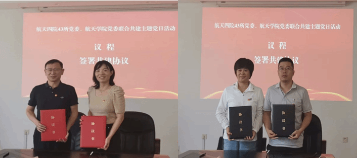 签订党组织共建协议。经过前期的充分酝酿和细致沟通,双方党委一致同意搭建党组织共建平台,积极发挥基层党组织政治功能和组织功能,合力实现党建和业务融合发展。黄越书记、罗向东书记代表双方党委签订“党委共建”协议书,ballbet贝博航天结构技术研究所党支部书记王时玉、43所研发中心党支部书记刘素娟代表双方支部签订“党支部共建”协议。共建单位将积极发挥党建共建平台作用,通过联合活动、实地考察、交流学习等方式,构建资源共享、优势互补、互相促进、共同提高的党建工作新格局,在党员教育、校企育人、基础研究、技术攻关、航天精神传承等方面开展深度合作和交流,进一步增强党组织的向心力和凝聚力,以高质量党建助力校企双方高质量发展。