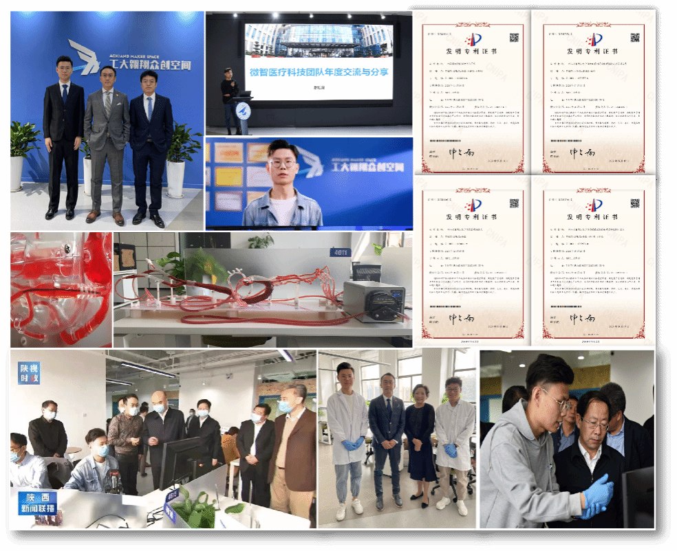 双创篇:厚积薄发 为国铸剑。总师育人文化不仅教会他低调务实的蛰伏,更教会他厚积薄发后为国铸剑的家国情怀。他将目光瞄准到与研究成果高度相关的介入性医疗器械产品,作为负责人创立了微智医疗科技团队,致力于研发新一代介入医疗器械产品,与多个医院的神经内科医生面对面交流,了解临床痛点所在,并与北京阿迈特医疗器械有限公司等多家单位达成了深度合作研发关系。在研发推进过程中,以员工第一或第二发明人申请了四项国家发明专利且均在上学年获得授权,其中一项以技术开发和转让的方式实现成果转化。资金全部投入到了体外实验的开展中,成功验证了微执行器对于类血栓颗粒的体外可控抓取,以及微型机器人在人眼球模型等限制性环境中的人体外运动试验。开创性工作也受到了来自社会各界的肯定与高度评价。
