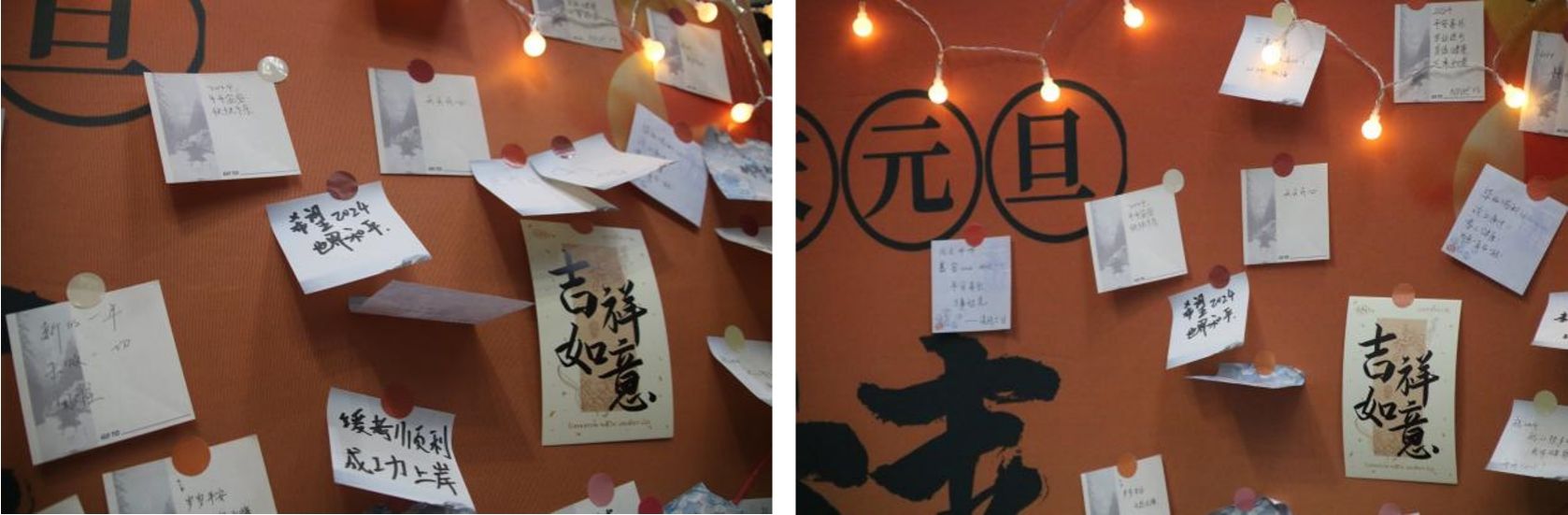 新年许愿墙上,师生纷纷写下自己的新年祝福,并将浪漫与温暖一道相送。