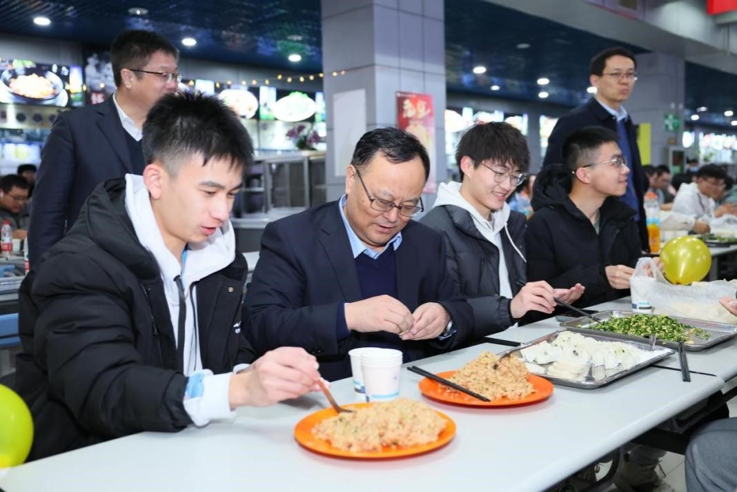 航天公司党委书记黄越、党委副书记韩冬、副经理宁昕及各年级辅导员也为同学们送上新年祝福,和同学们一边包饺子,一边交流,欢声笑语中,共同感受着新年的喜悦。