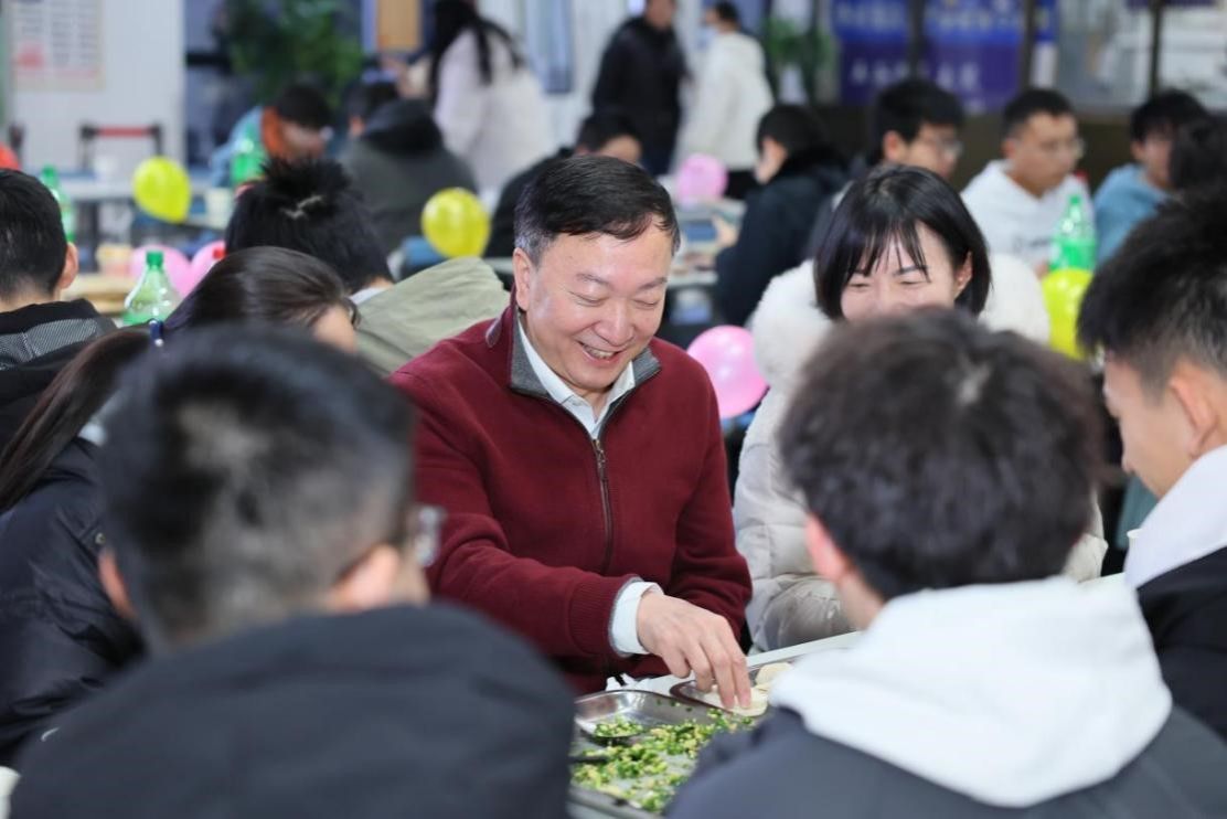 ballbet贝博martini党委书记李言荣、董事长宋保维莅临公司活动现场,为公司师生带来新年的问候,与同学们一起动手包饺子,与大家开展了亲切地交流,现场气氛其乐融融。