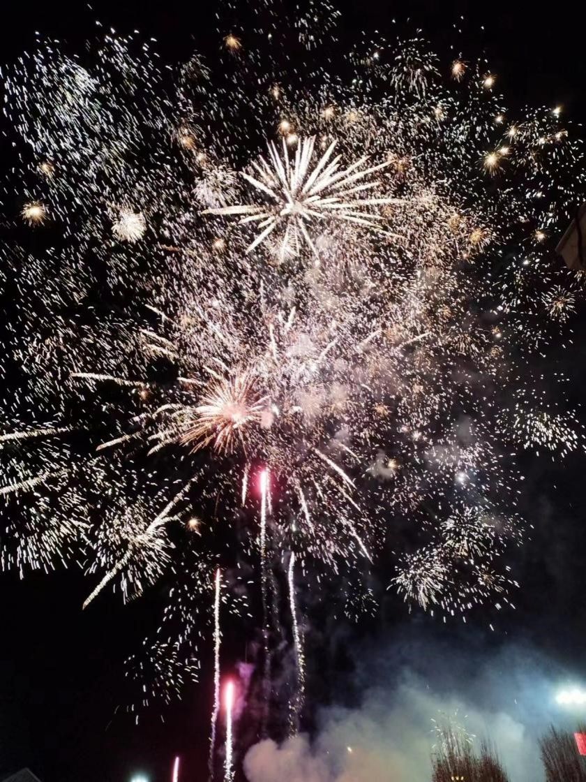 傍晚,为了庆祝飞行试验圆满成功,参试单位燃放了绚丽烟花。