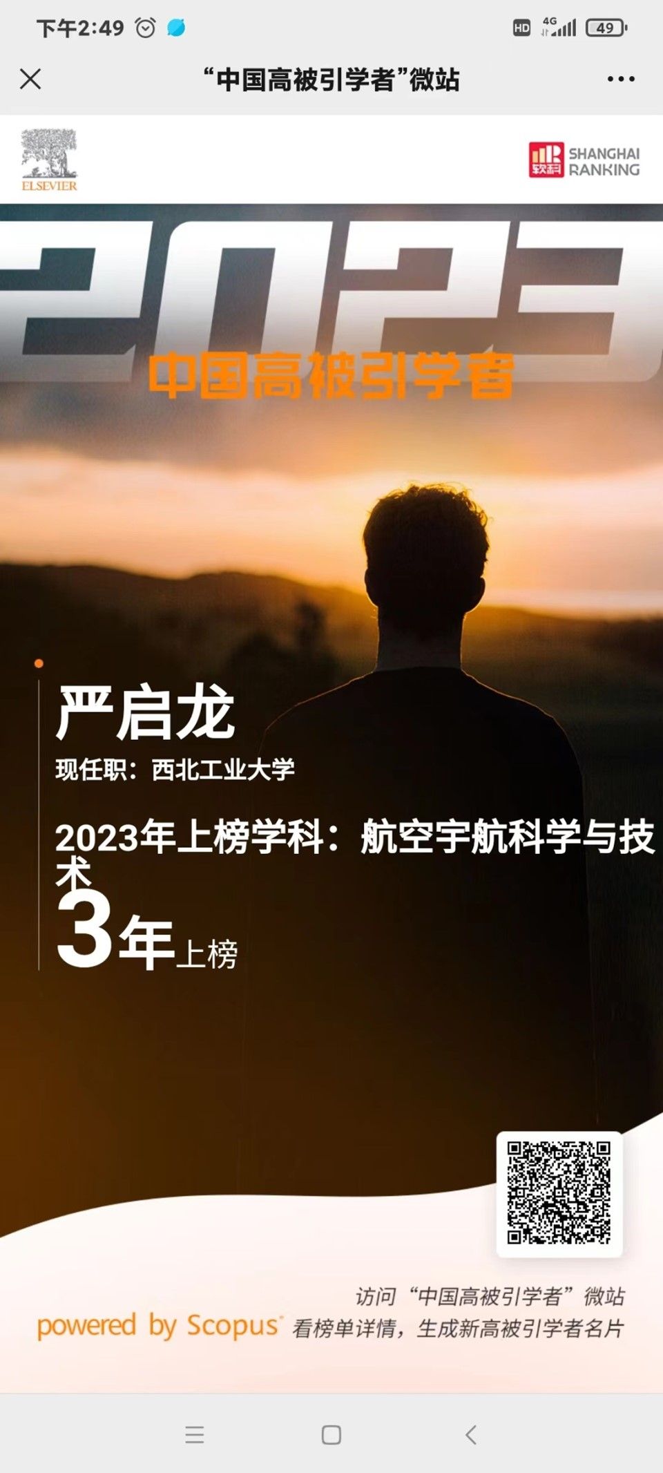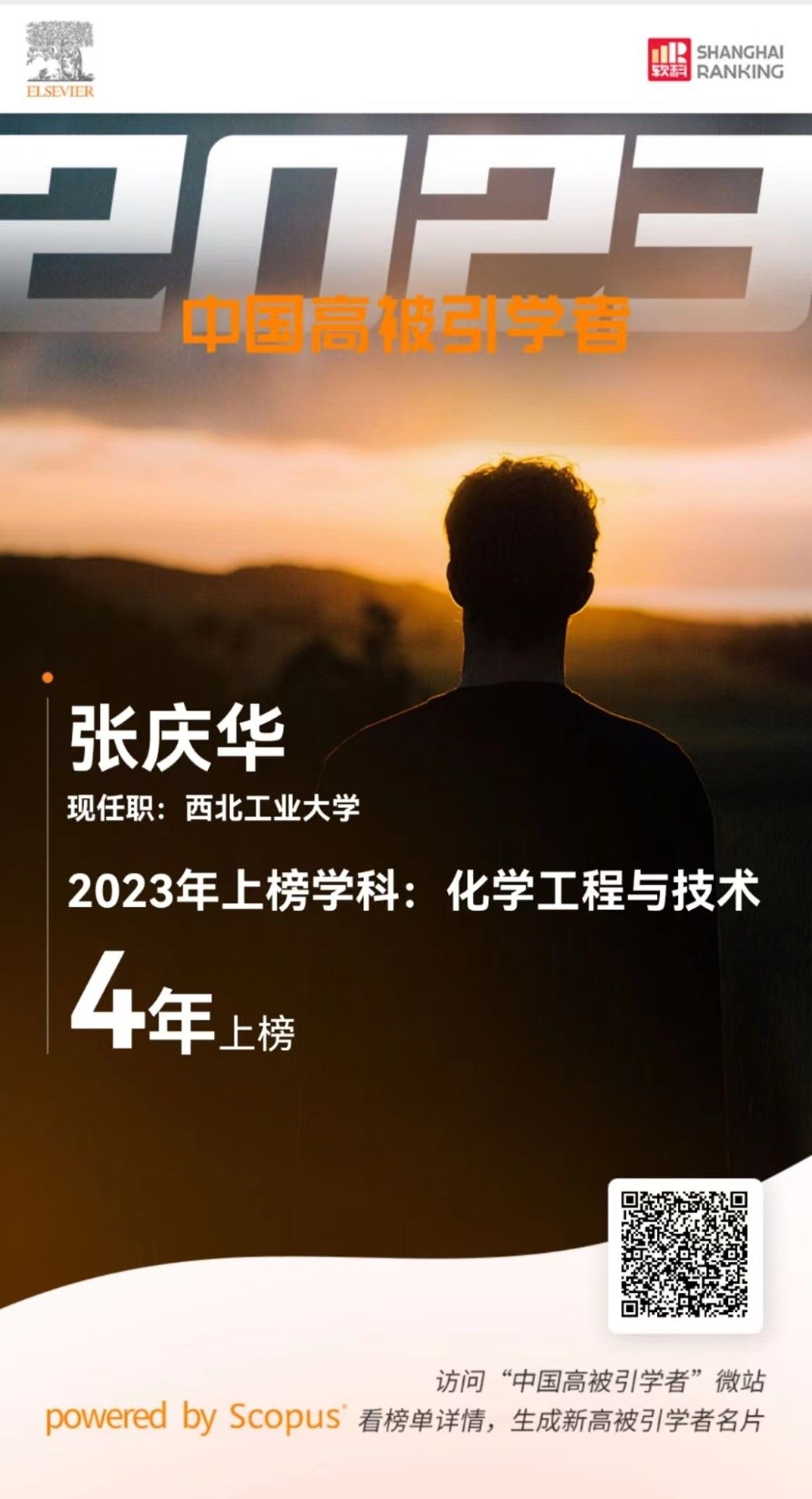 张庆华教授在化学工程与技术学科连续第4年上榜,严启龙教授在航空宇航科学与技术学科连续第3年上榜!