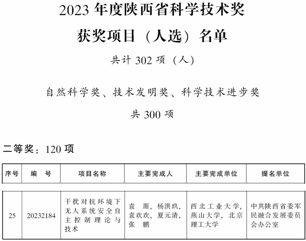 近日,陕西省人民政府公布了2023年度陕西省科学技术奖励获奖名单,ballbet贝博袁源教授《干扰对抗环境下无人系统安全自主控制理论与技术》荣获自然科学二等奖!