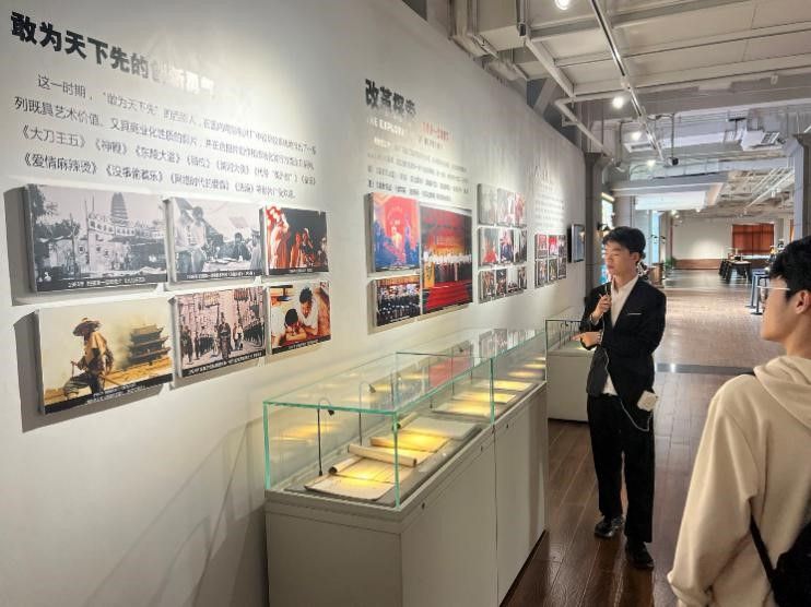 在西影电影博物馆里,师生们参观了《西安事变》《彭大将军》等重大历史题材电影中的军用车辆和武器装备,学习了经典电影的制作方法与拍摄技术。博物馆中陈列的一盒盒珍贵胶片背后都蕴含着中国电影工业发展的脚步,一幅幅生动照片都见证了中国电影事业的精彩瞬间。西影厂既是历史的见证者又是历史的诉说者,其拍摄的抗日战争题材影片给大家留下深刻印象。通过参观学习,师生们不仅拓展了视野,增长了电影文化知识,更深刻地感受到了中国共产党领导下的中国电影事业发展和西影厂的文化底蕴,进一步增强了文化自信,强化了理想信念。