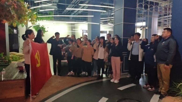 在西影电影博物馆内,师生党员们面向党旗重温入党誓词,在铮铮誓言中牢记初心使命,坚定理想信念。