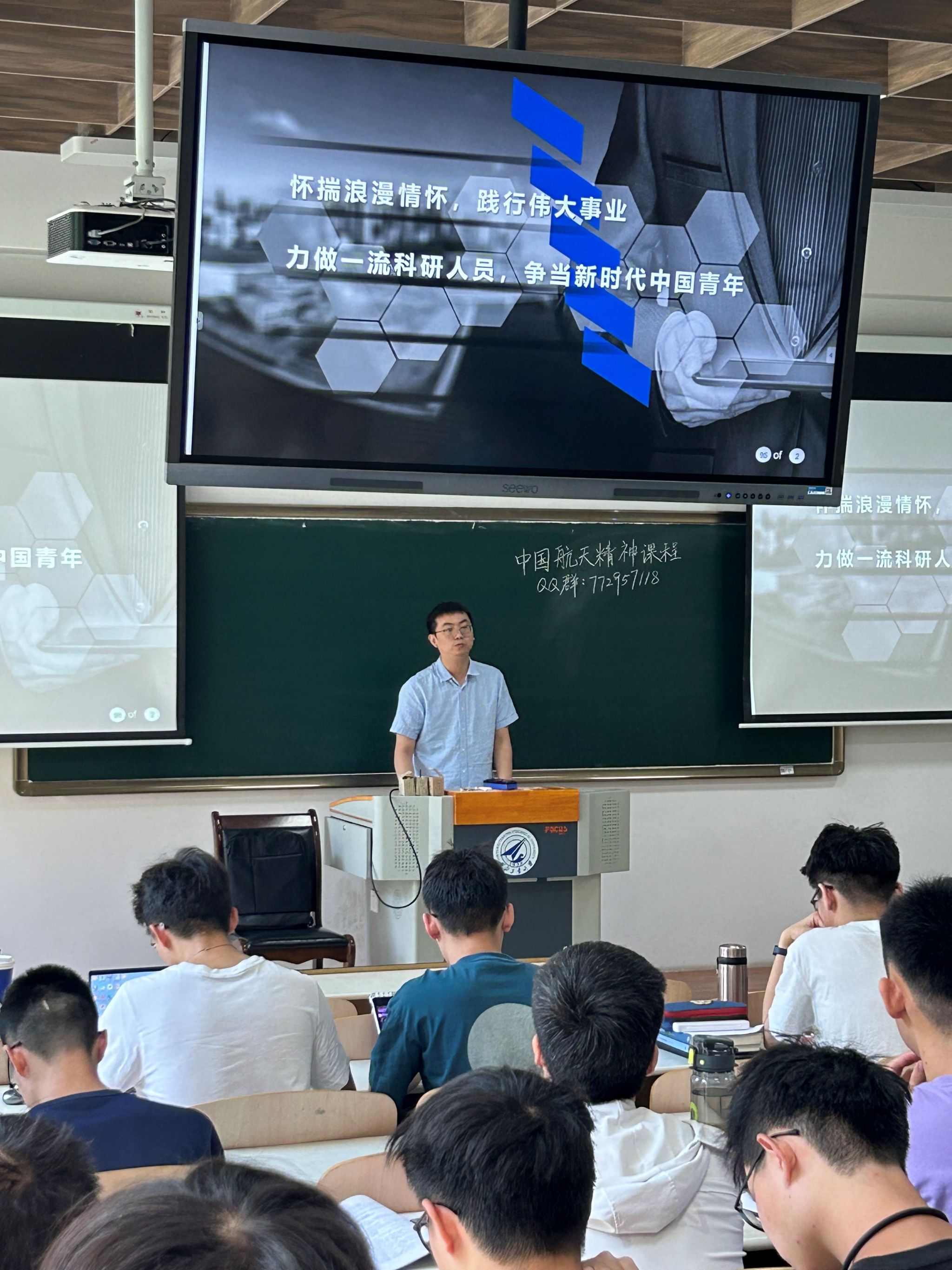 5月17日上午,ballbet贝博课程思政研究中心邀请了中国航天科技集团八院八部某型号副总设计师许新鹏高工,在长安校区教学东楼B1-205教室为ballbet贝博特色课程《中国航天精神》带来了主题为“怀揣浪漫情怀,践行伟大事业,力做一流科研人员,争当新时代中国青年”的总师思政课程。