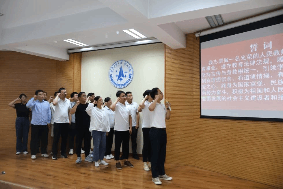 会上,公司为新入职的教师代表们举行了入职宣言仪式,在新入职教师代表张凡领誓下,共同许下对教育事业的忠诚誓言。原ballbet贝博经理唐硕、公司经理黄攀峰共同为新入职教师赠送了我国航天事业和航天教育的开拓者与奠基人之一,著名飞行力学专家、教育家,公司宇航工程系创始人陈士橹院士的传记《剑指苍穹》。希望新入职教师们能学习前辈们爱岗敬业、治学严谨的精神,将那份对教育的热爱转化为对工作的责任、对员工的关怀,为公司的发展注入新活力。