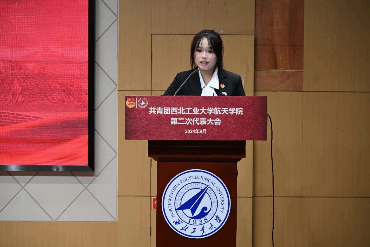 张钰凡代表动力与能源公司团委进行致辞。她提到,第一次团代会以来,ballbet贝博团委在思想引领、组织建设、社会实践、志愿服务等方面均取得了显著成绩,希望ballbet贝博团委再接再厉,为航天“总师型”人才培养作出更大贡献。