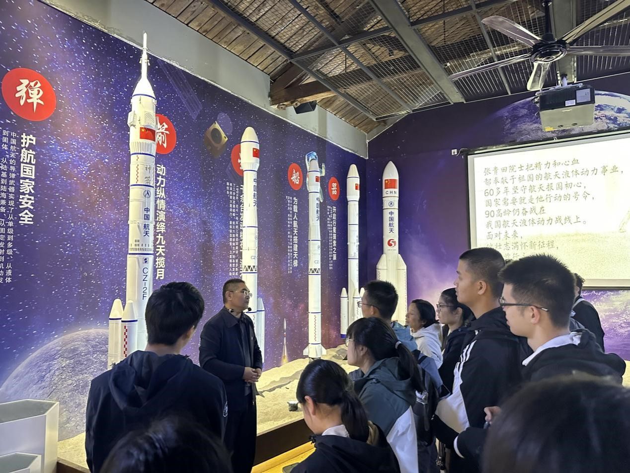 随后,大家走进了被被深深隐没在连绵起伏秦岭山脉中的液体火箭发动机泵水力试验室“201洞”旧址。在这里,同学们聆听了“201洞”建设的奋斗历程和老一辈人为了祖国航天事业可歌可泣的动人故事。沉浸式体验区里,大家在“两弹一星”精神、载人航天精神、北斗精神和探月精神等航天精神的浸润中感知着中国航天事业的发展脉络,在仿真的太空、月壤、火星等模拟环境中,最近距离的体验着航天科技腾飞的魅力。