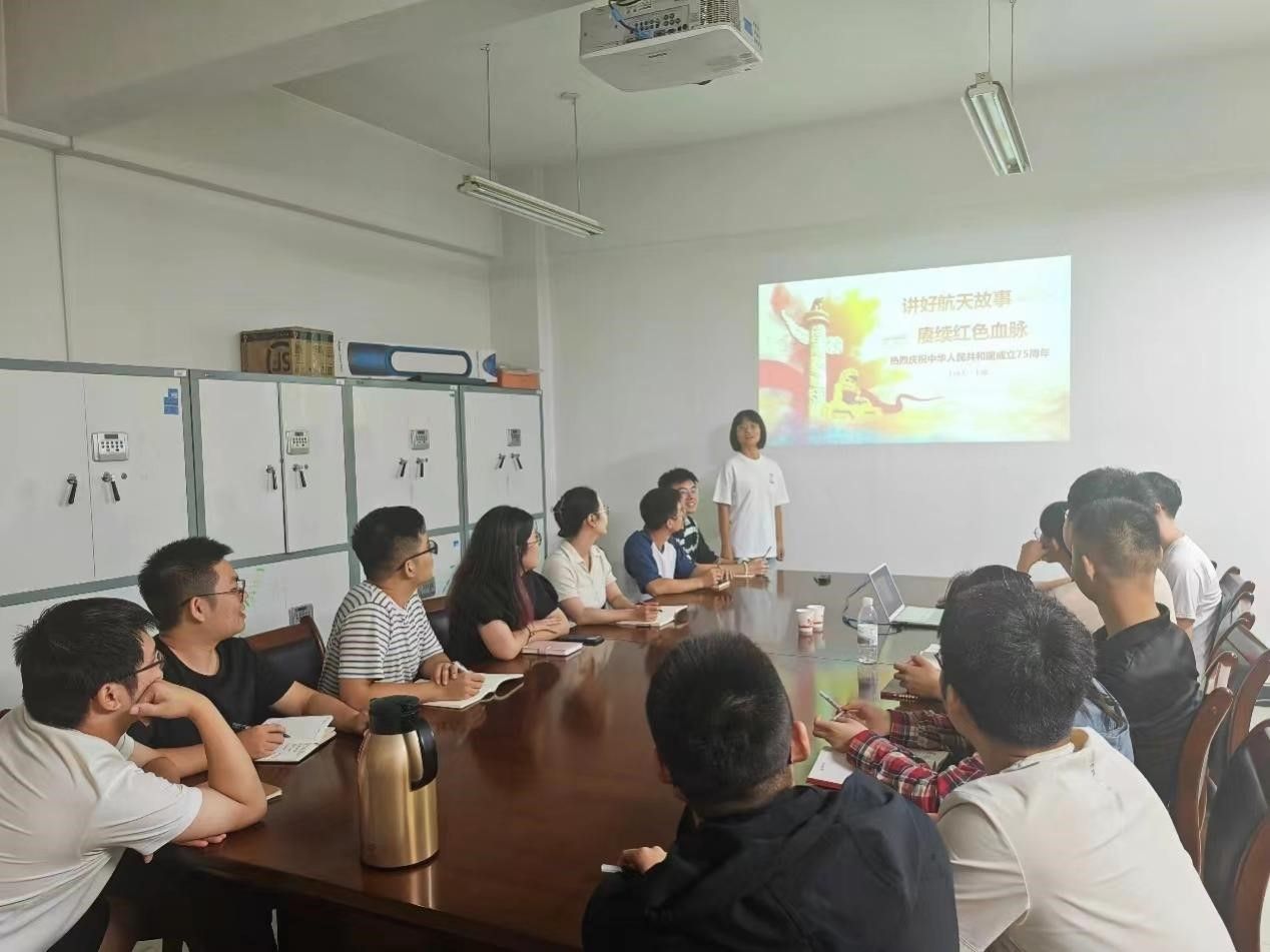 为庆祝新中国成立75周年,飞行控制研究所研究生第1党支部于10月8日举办了以“讲好航天故事 赓续红色血脉”的主题党日活动。此次活动通过表达对祖国的深切祝福,激发支部党员航天报国情怀。