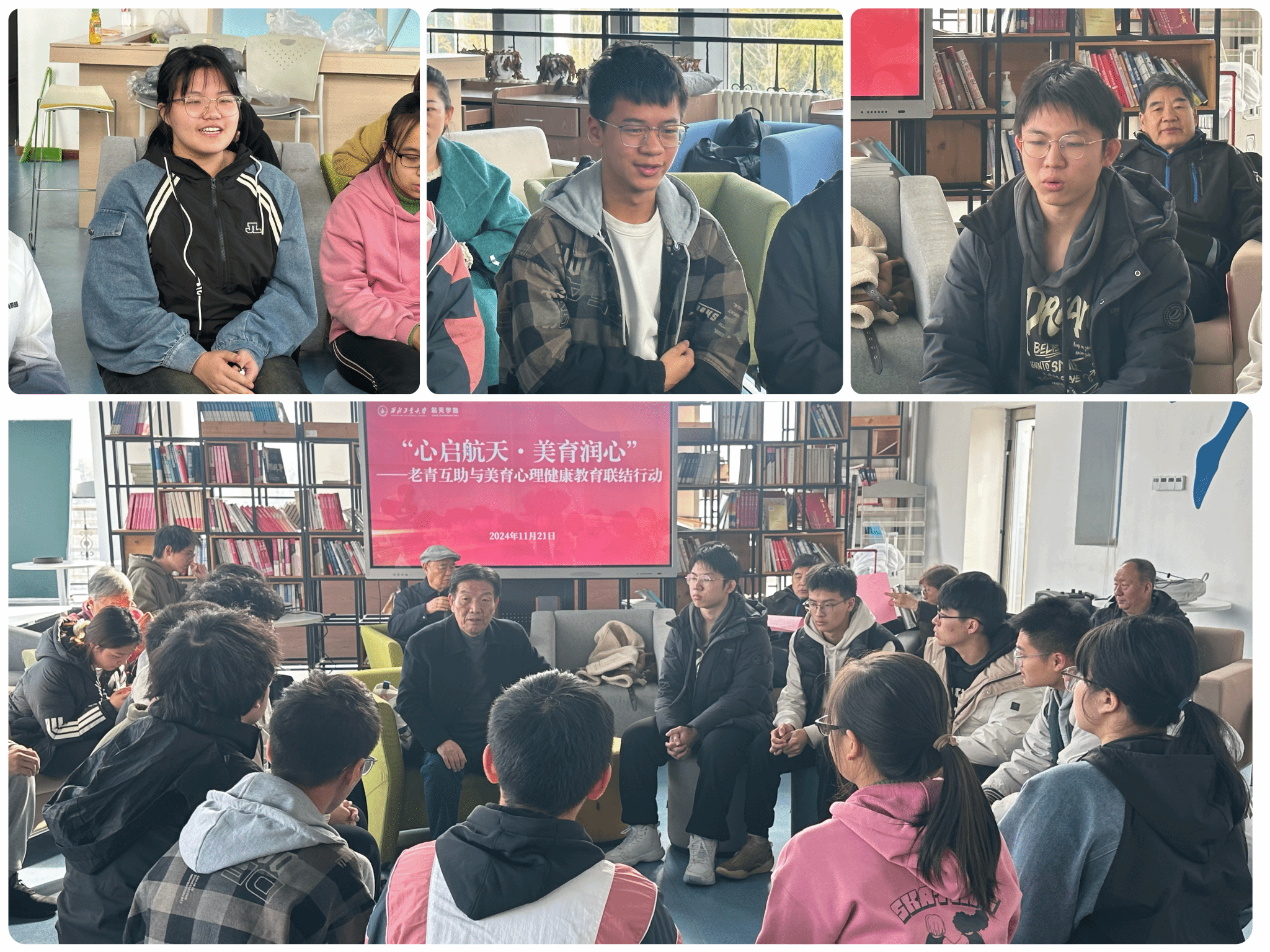 11月21日,由校关工委、ballbet贝博、校医院联合主办的“心启航天·美育润心”——老青互助与美育心理健康教育联结行动在西工大长安校区举行。校关工委“银发育心员”、ballbet贝博师生代表参加了活动。校关工委委员王友明主持活动。