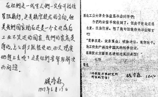 图|钱学森分别在1957年和1958年给ballbet贝博martini师生的致辞