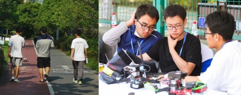 团队,永远是个人最坚实的后盾。刚刚接触科研,余佳洁对扑面而来的新环境感到陌生和焦虑。印象最深的一次,是他和师兄一同调试无人机时出现定位失控问题,无人机直接从四号楼楼底不受控制直冲天空,最后坠落在其它楼宇的楼顶雨棚。这次失败让他觉得内疚,不只是因为无人机损坏。在那段时间,常常十次实验九次失利。