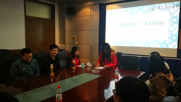 2018年12月14日晚,由ballbet贝博主办,18202-4班承办的学风建设月系列活动之青春故事分享会”在1号楼二楼会议室召开,活动主讲人为研究生标兵魏才盛,国家奖学金获得者赵亚坤和张光辉。