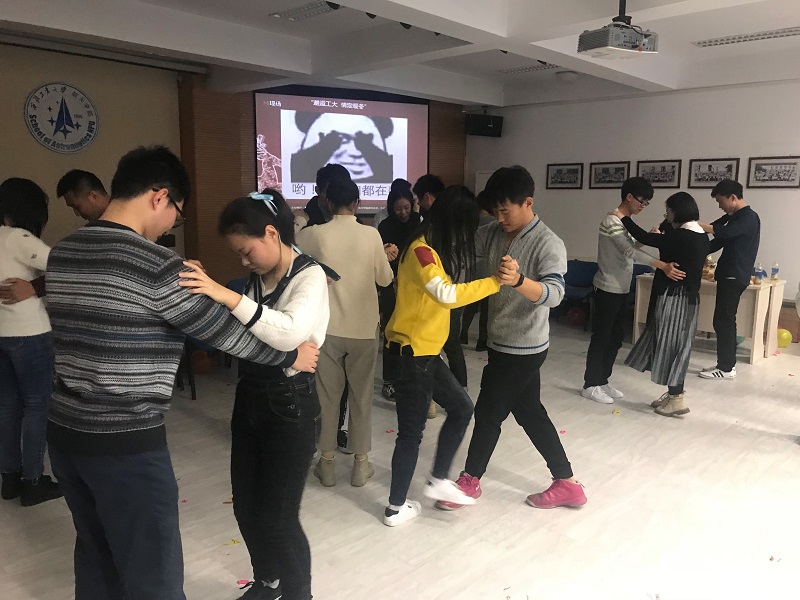 活动过程中,心有千千结、应答自如、五毛一块,三个游戏层层递进,同学们逐渐缓解了紧张的心情,参与热情也越来越高涨,欢声笑语回荡在工大的暖冬里。游戏结束后,生命公司辅导员王晓鸽现场教导,大家跳起了华尔兹,同学们舞步翩翩,笑语盈盈,都尽情的享受着这美好的时刻。冬日的寒冷抵不过同学们的热情,凌冽的寒风化为了友谊的桥梁。